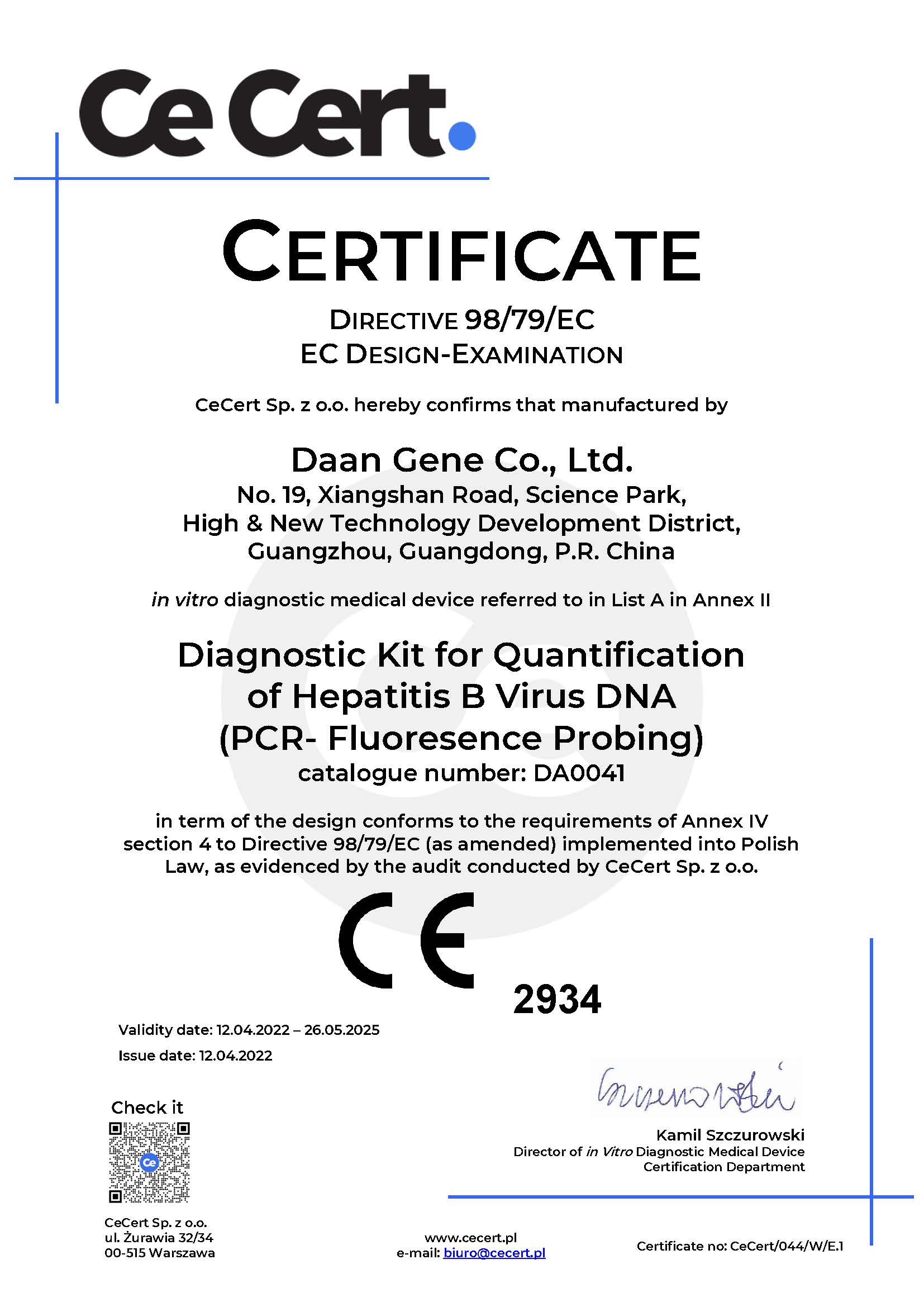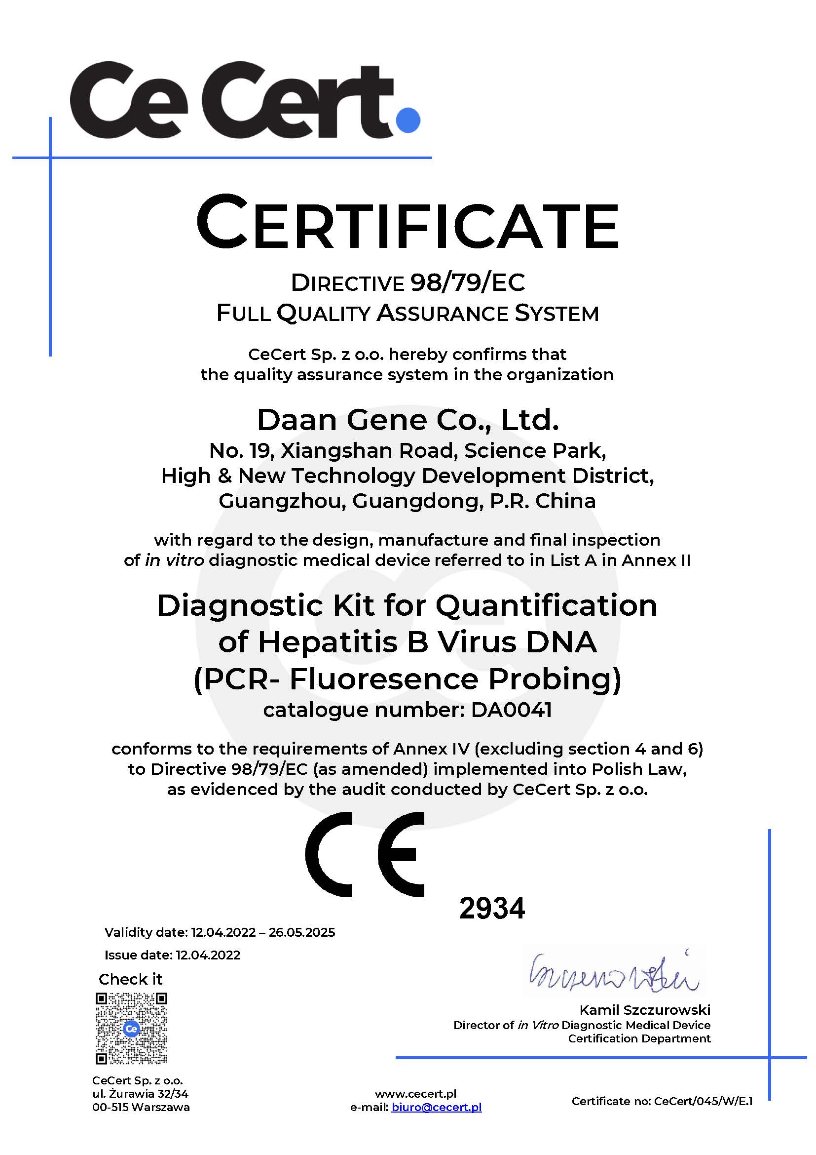 “百年達安,世界達安”,4月12日,達安基因乙型肝炎病毒核酸測定試劑盒(PCR-熒光探針法)、丙型肝炎病毒核酸測定試劑盒(PCR-熒光探針法)獲得了CE List A產(chǎn)品認(rèn)證,成為中國首家核酸檢測獲得歐盟CE最高認(rèn)證的企業(yè),保持了在國際市場上的認(rèn)可度,再次驗證了達安基因肝炎診療檢測方案的高水準(zhǔn)。