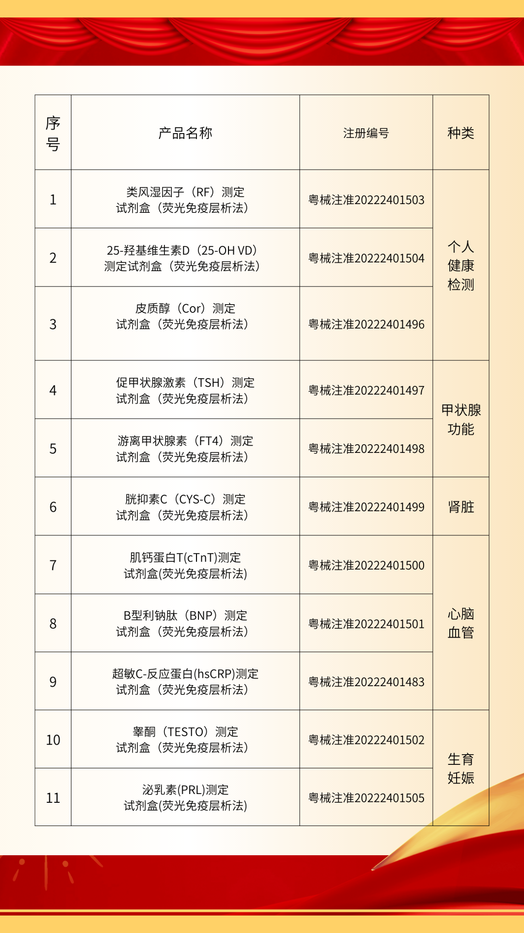 此次獲證的產(chǎn)品涵蓋了7大類檢測項目,檢測范圍涵蓋心腦血管疾病、腎臟類疾病、骨質(zhì)疏松、類風(fēng)濕、甲狀腺疾病、糖尿病、性激素等常見疾病,實現(xiàn)臨床多樣化的輔助診斷。至此中山生物已經(jīng)有34項POCT產(chǎn)品獲批。