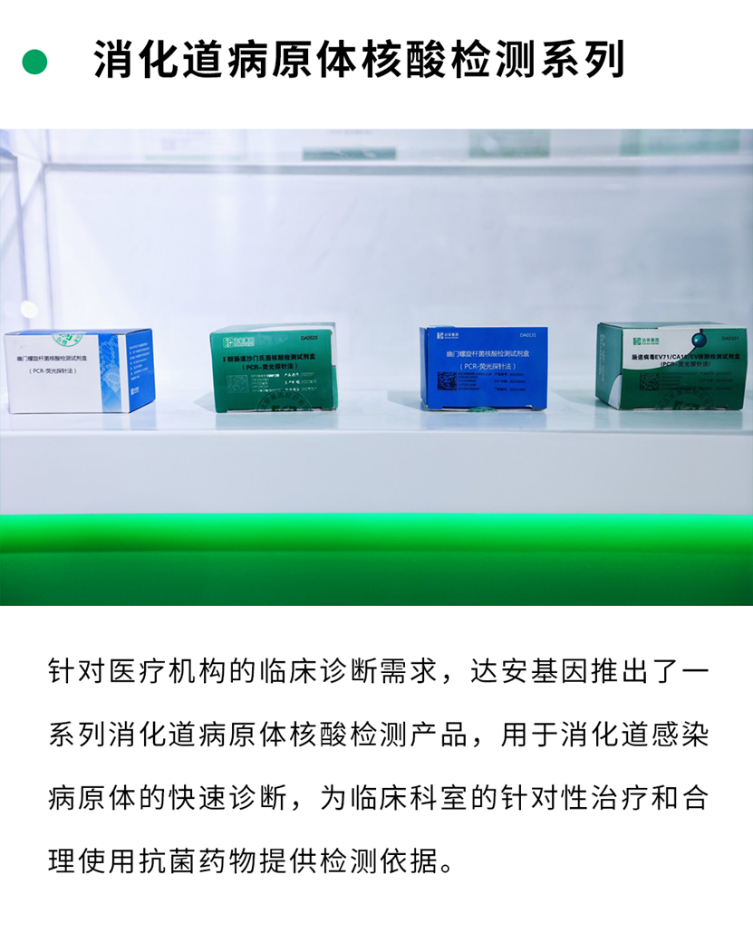 本次展會,達(dá)安基因?qū)⒄古_分區(qū)布局,通過分子診斷區(qū)、生化免疫診斷區(qū)、質(zhì)譜診斷區(qū)、試劑展示區(qū)四大展區(qū),將一系列活躍在體外診斷領(lǐng)域的創(chuàng)新成果向現(xiàn)場同道呈現(xiàn)。