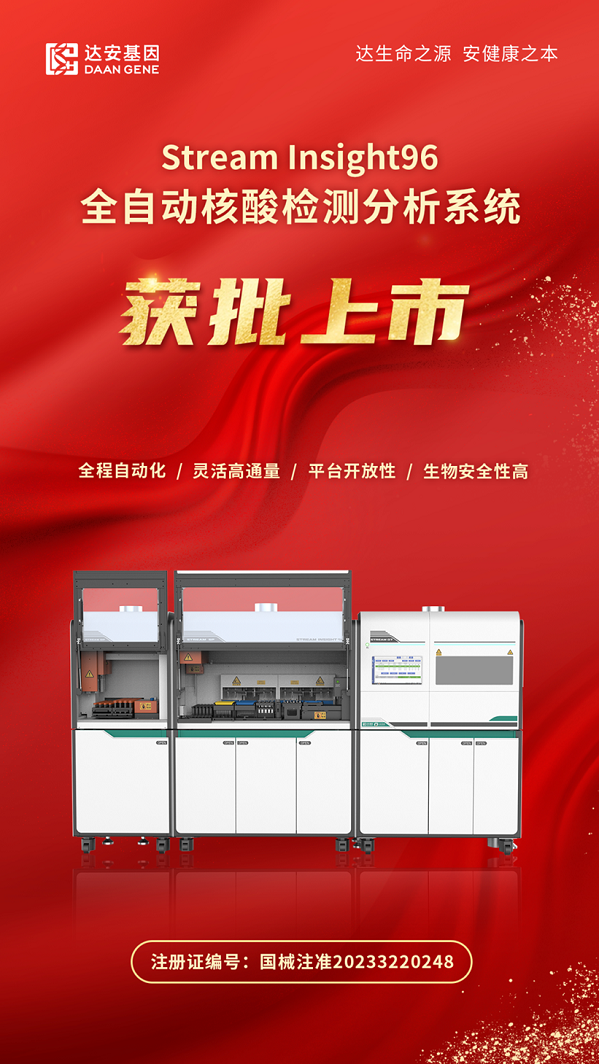 ?2023年3月7日,達安基因Stream Insight96全自動核酸檢測分析系統(tǒng)獲得國家藥品監(jiān)督管理局批準第三類醫(yī)療器械注冊證,注冊證編號:國械注準20233220248。
