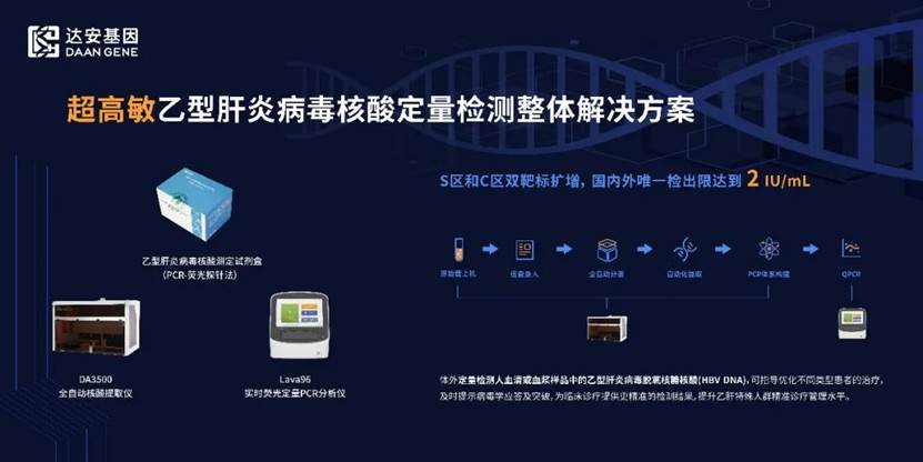 本次展會(huì),達(dá)安基因也首次展出超高敏乙型肝炎病毒核酸定量檢測(cè)整體解決方案,國內(nèi)外唯一檢出限達(dá)2 IU/mL,能讓乙肝診療變得如此精確!